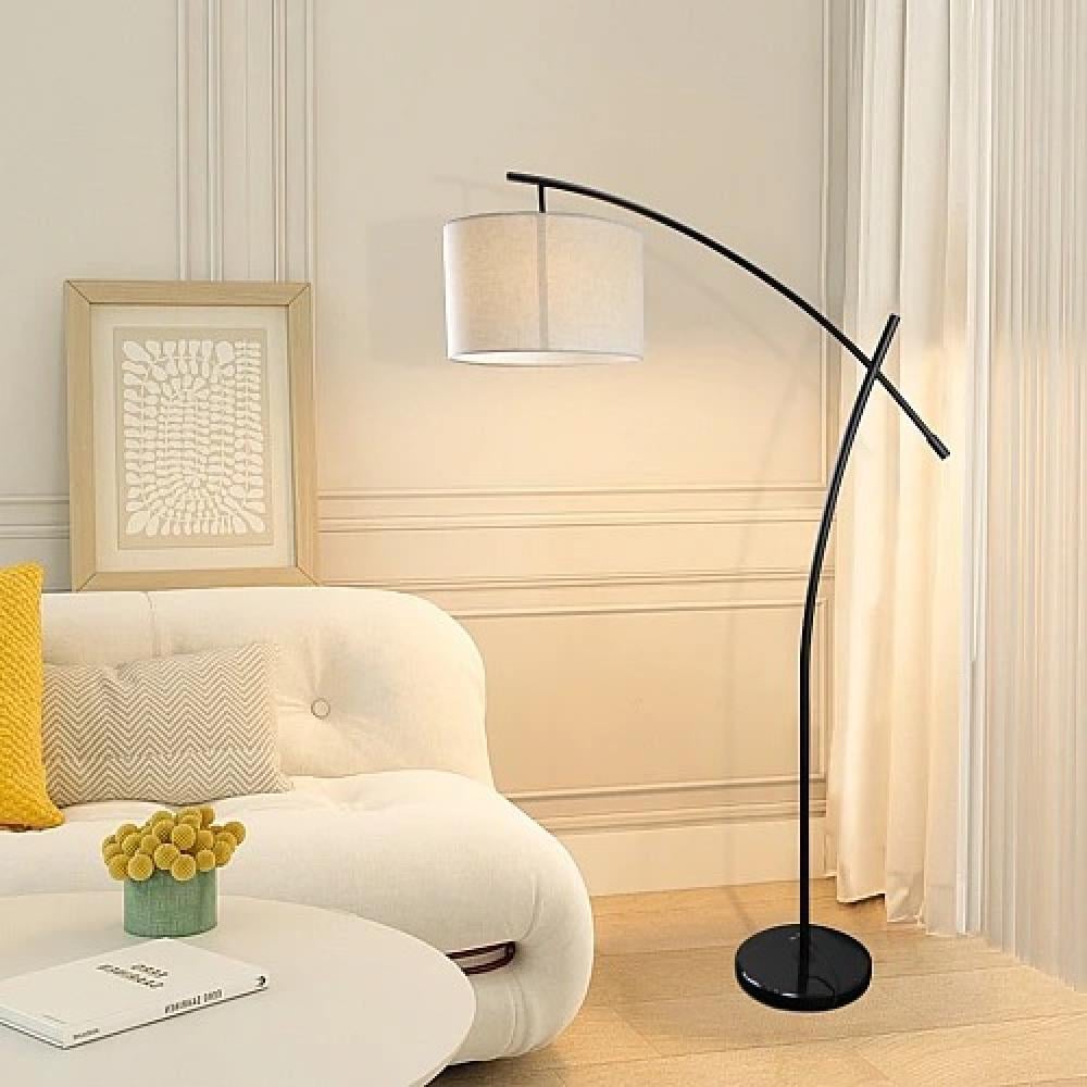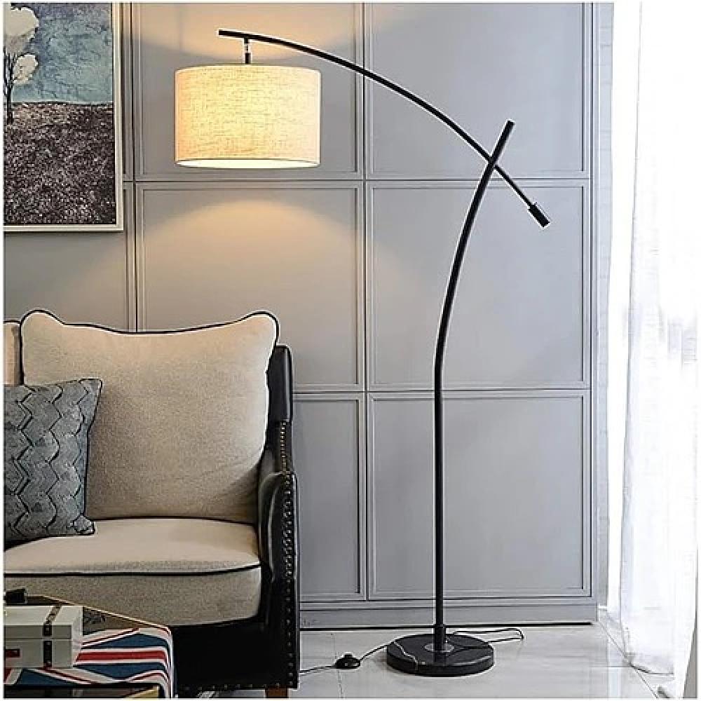 أبجورة أرضية مميزة بارتفاع 168 سم وتصميم قوسي ناعم بلون ذهبي أنيق، مزودة بغطاء إضاءة كلاسيكي بلون محايد، تضيف لمسة ديكور فاخرة لأي غرفة.