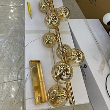 اجعل من الإضاءة عنصرًا جماليًا بارزًا في منزلك مع هذه الثريا العصرية الزجاجية. تصميم فاخر يجمع بين البساطة والأناقة بلمسة ذهبية دافئة، ولمبات كروية شفافة تضيف لمسة من الفخامة والضوء المتناغم.
