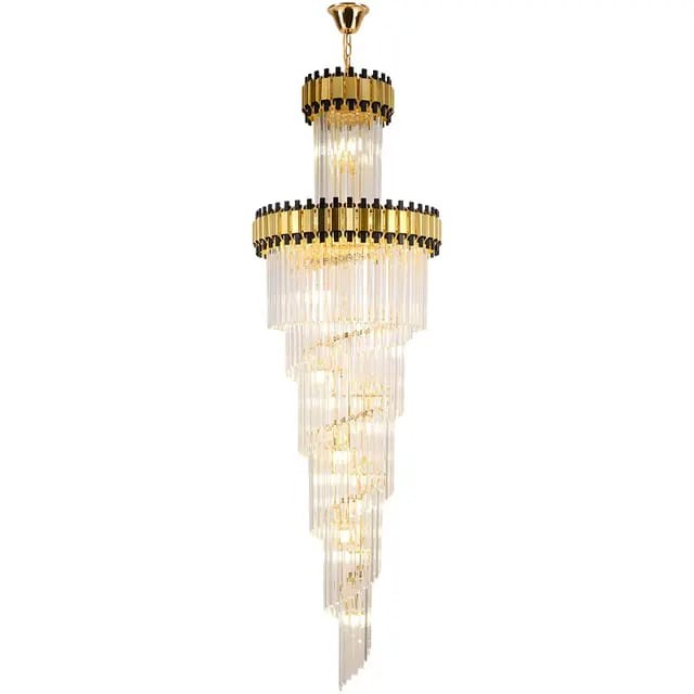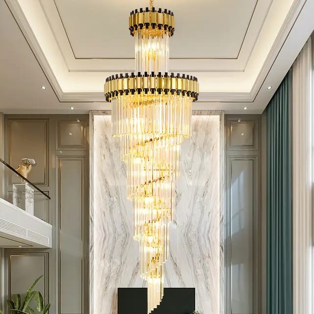 استمتع بالفخامة والرقي مع ثريا الشلال الذهبية التي تتميز بتصميمها العصري الملفت للنظر. مثالية للقبب العالية والدرج والصالات الواسعة، لتضفي على المكان سحرًا ملكيًا وإضاءة راقية بتوزيع رائع. مصنوعة بعناية من أجود خامات الكريستال والمعدن المطلي بالذهب لتجمع بين الأناقة والمتانة.