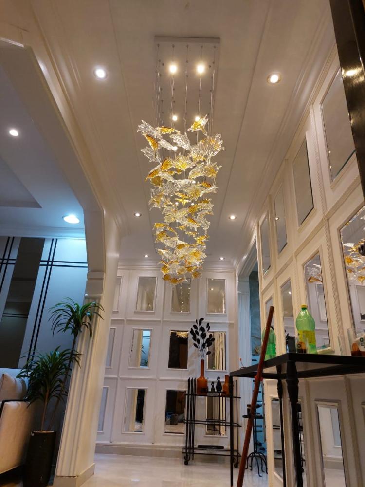 من متجر آرت الأضواء التجارية، نقدم لك واحدة من أرقى تصاميم الإنارة العصرية، تجمع بين الإبداع والجمال الفاخر. ثريا معلقة بإنارة ليد دافئة، بتصميم مستطيل أنيق تنسدل منه أوراق كريستالية شفافة مع لمسات ذهبية تضيء المكان بجاذبية ساحرة.
