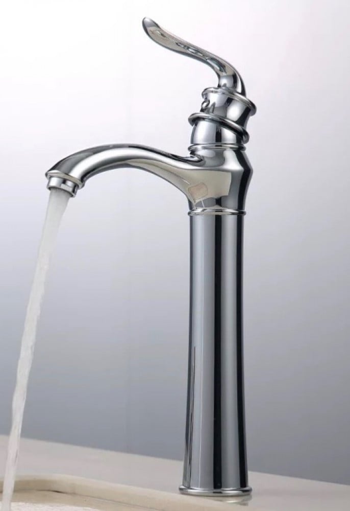 خلاط مغسله فضي عالي تحكم مقبض واحد في الماء الساخن والبارد، سهل ضبط درجة حرارة الماء