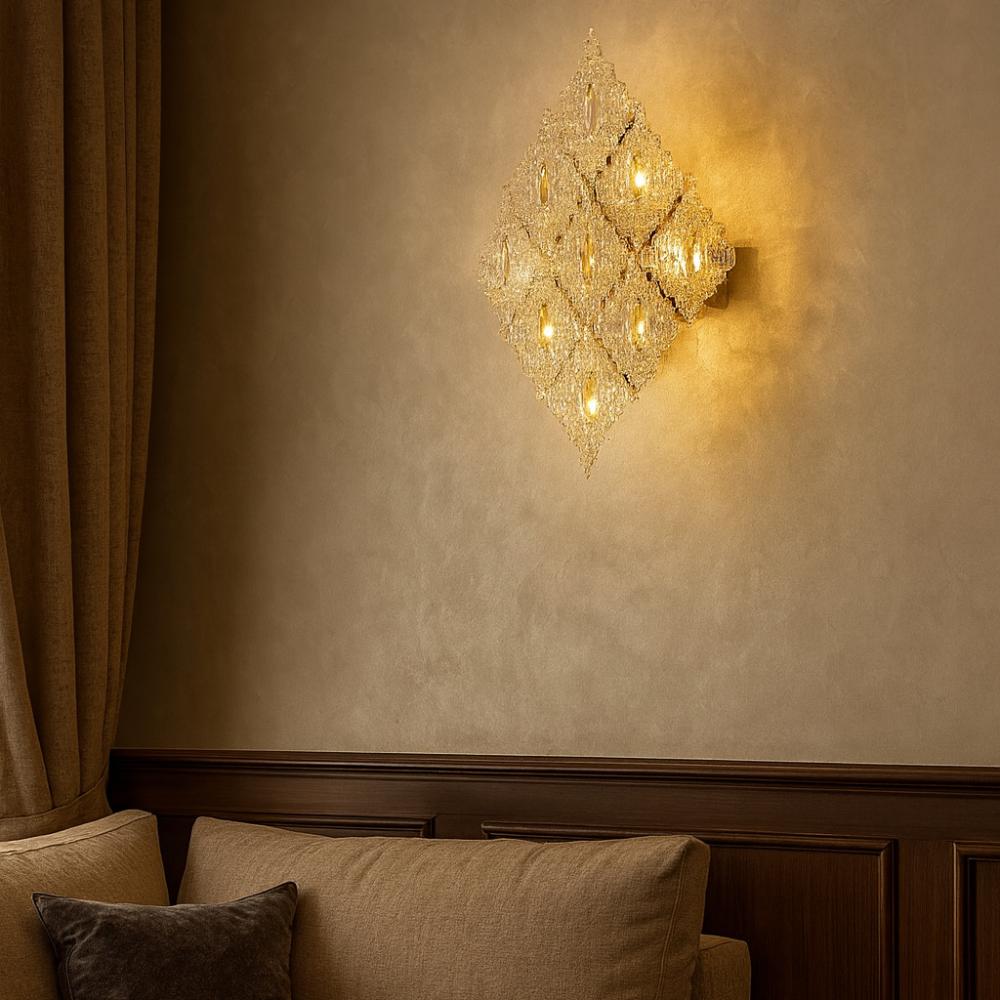 تـصـمـيـم مـودرن فـاخـر يـجـمـع بـيـن ثـريّـة كـريـسـتـال لامـعـة وأبـالـيـك جـداريّـة أنـيـقـة تـتـنـاغـم مـعـهـا فـي كـل تـفـاصـيـل الإضـاءة والـديـكـور 🌟