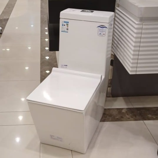 كرسي حمام إفرنجي بتصميم عصري بزاوية حادة ولمسة مربعة أنيقة تضيف لمسة جمالية لحمامك. يتميز بلونه الأبيض النقي وتناسقه مع مختلف الديكورات. مزوّد بتصريف أرضي بقياس 25 سم ليُناسب أغلب أنظمة السباكة المنزلية.