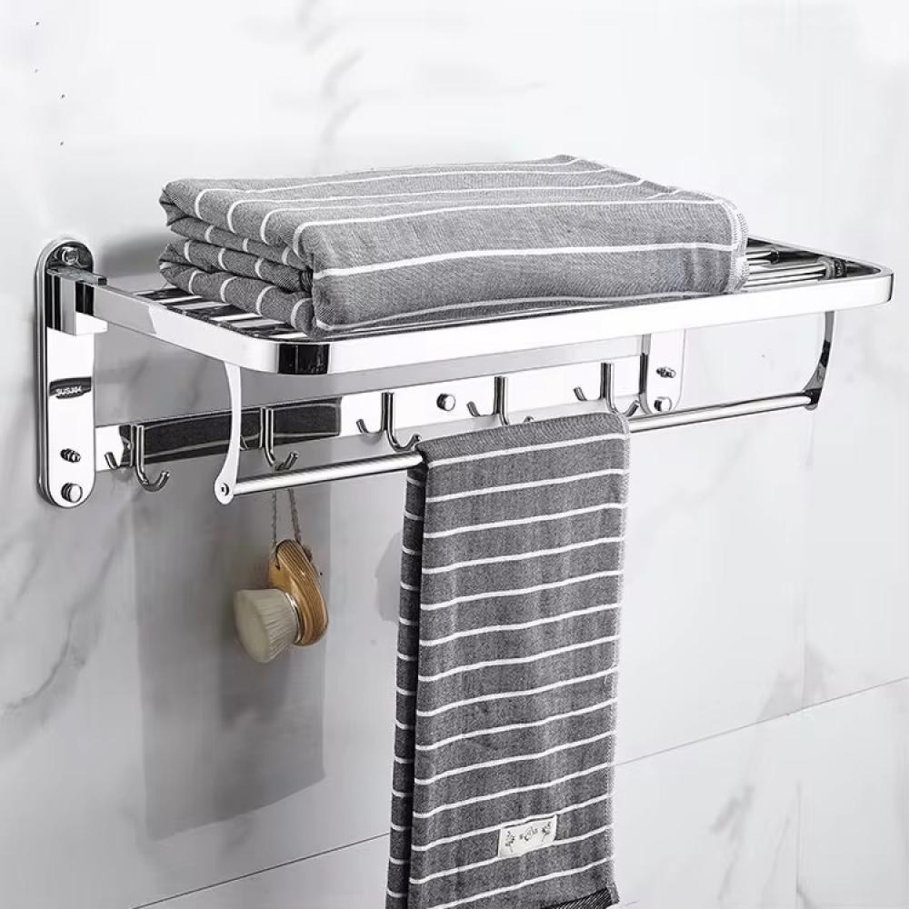 نظم حمامك بأناقة مع هذا المعلاق الجداري للمناشف المصنوع من الكروم اللامع المقاوم للصدأ، بتصميم ذكي يجمع بين التخزين والتعليق لتوفير المساحة.