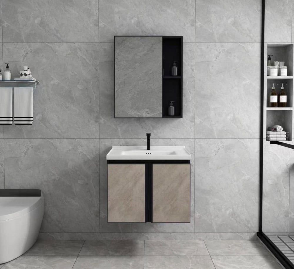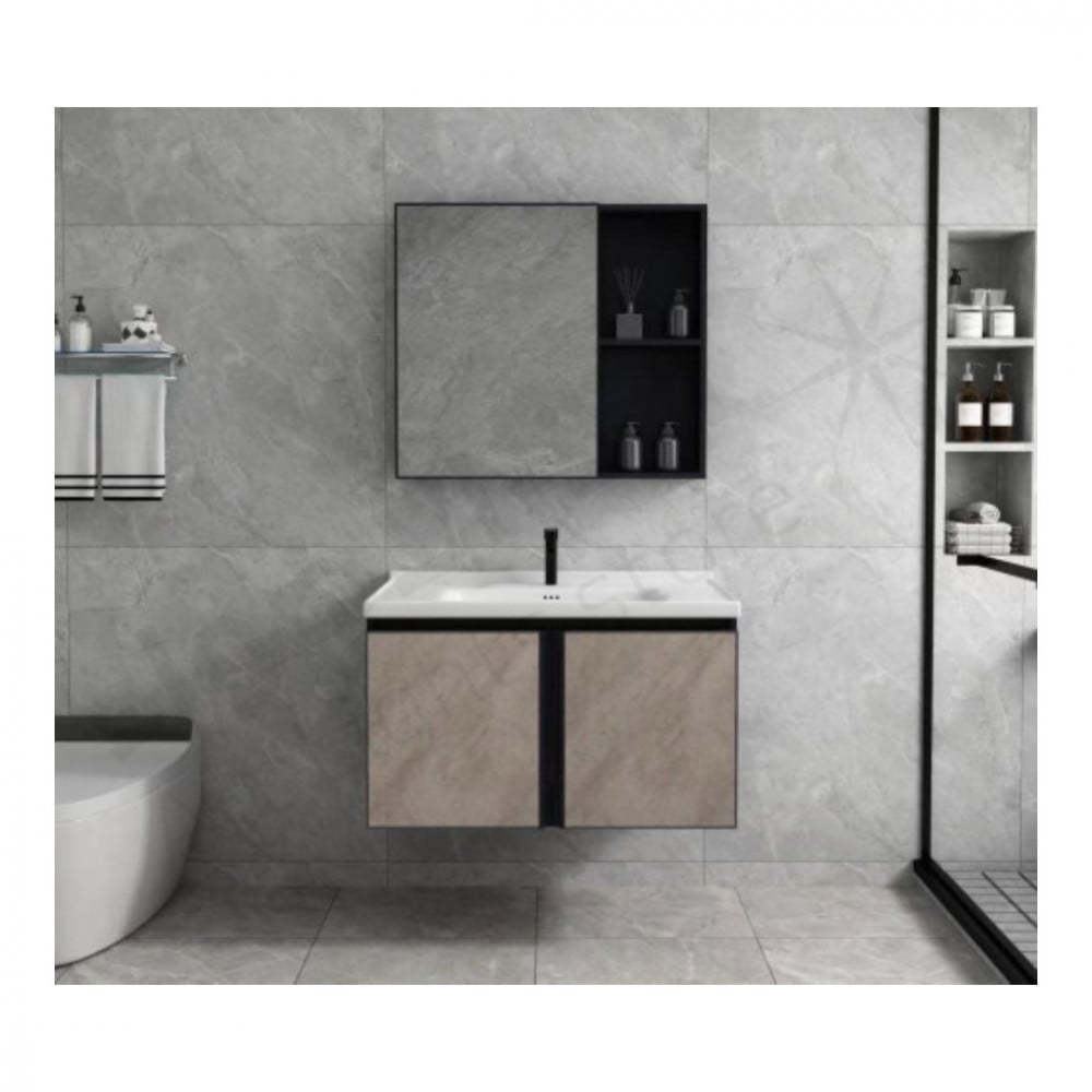 مغسلة المنيوم + صيدليه ومرأة متوفر بمقاس ( 60 سم ) و ( 80 سم )