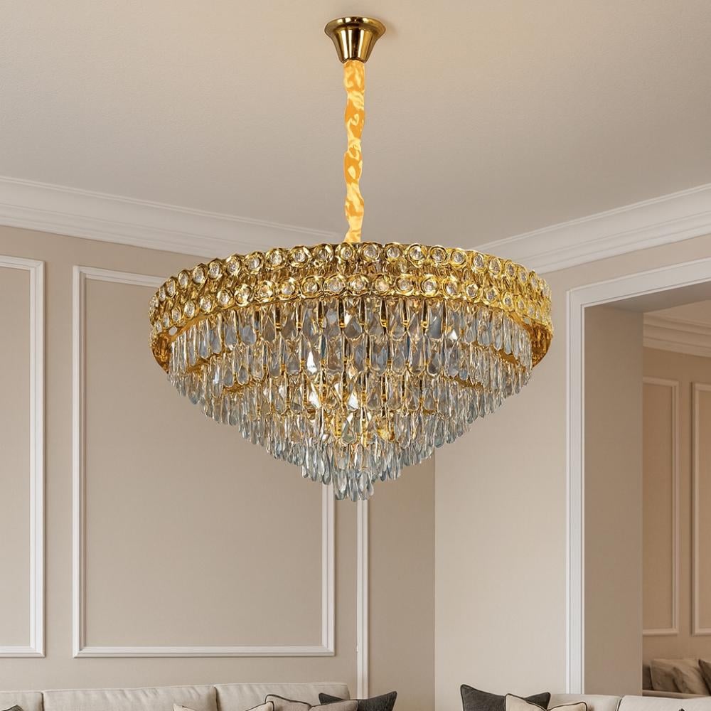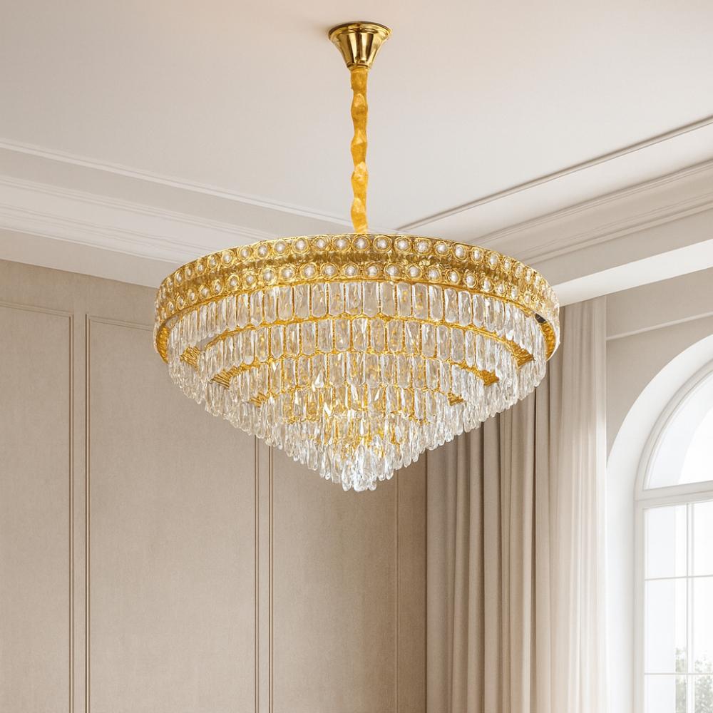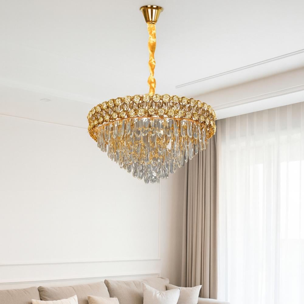 ارتقِ بجمال ديكور منزلك مع النجفة الكريستال الذهبية ذات التصميم الراقي والتفاصيل المتقنة. تجمع بين الأناقة والفخامة لتعكس لمسة من الرفاهية والإبهار، وتتوفر بعدة مقاسات لتناسب مختلف المساحات.