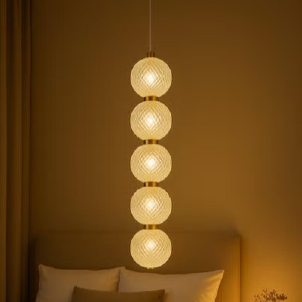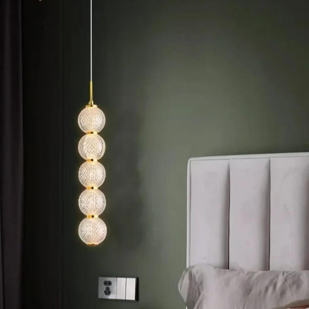 من متجر آرت الأضواء التجارية، نقدم لك هذه النجفة العصرية بتصميم فاخر مكوّن من كرات كريستال شفافة بتفاصيل ناعمة، مع هيكل ذهبي أنيق يضيف لمسة فنية راقية لأي غرفة داخلية.