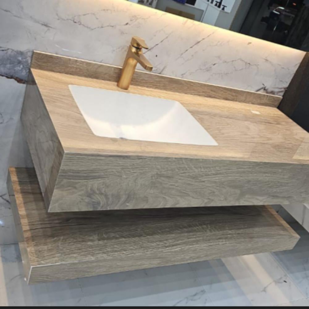 جدد ديكور حمامك بأناقة فاخرة مع مغسلة الرخام الخشبي المصممة بطابع عصري يجمع بين الشكل الدافئ للخشب وفخامة الرخام.